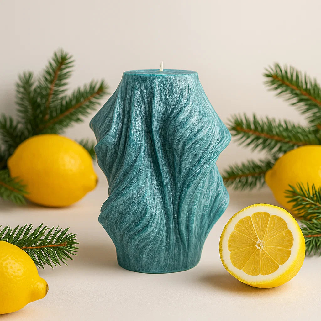 Illuminate your space with a real handmade candle in Emerald Forest, featuring a pleasant scent with hints of lemon, pine, and earthy tones. Each unique pattern is crafted from palm fruit wax, making it vegan and eco-friendly. Add a touch of nature to your home!