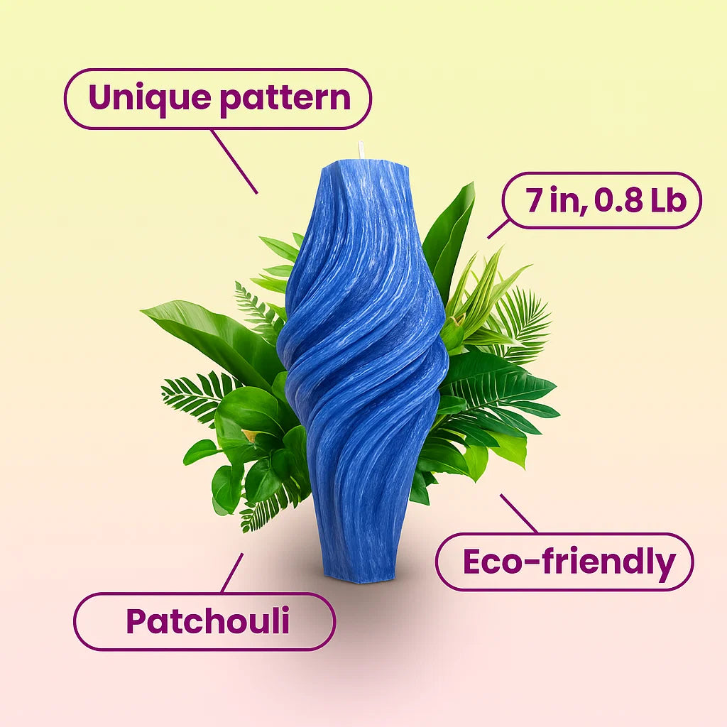 Get into the vortex of handmade luxury with our small Vortex, Deep Ocean, Patchouli candle. Made with vegan and eco-friendly palm fruit wax, each candle boasts a unique pattern and a pleasant scent. The main fragrance is patchouli, accompanied by earthy and woody notes. Your senses will thank you!